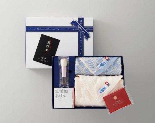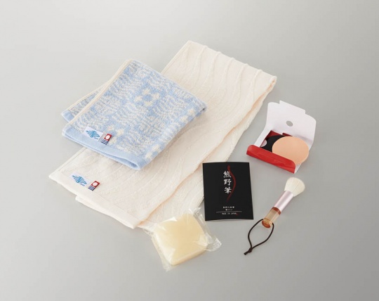 筆の産地として名高い熊野筆の洗顔ブラシと今治タオルのセット。
