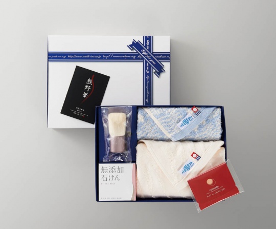 筆の産地として名高い熊野筆の洗顔ブラシと今治タオルのセット。