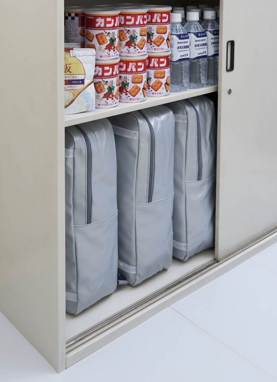 長方型で保管スペースの無駄も少ない防災セットです。