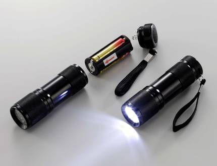 災害時に役立つ強力9光ライト。小型軽量なので常時携帯できます。