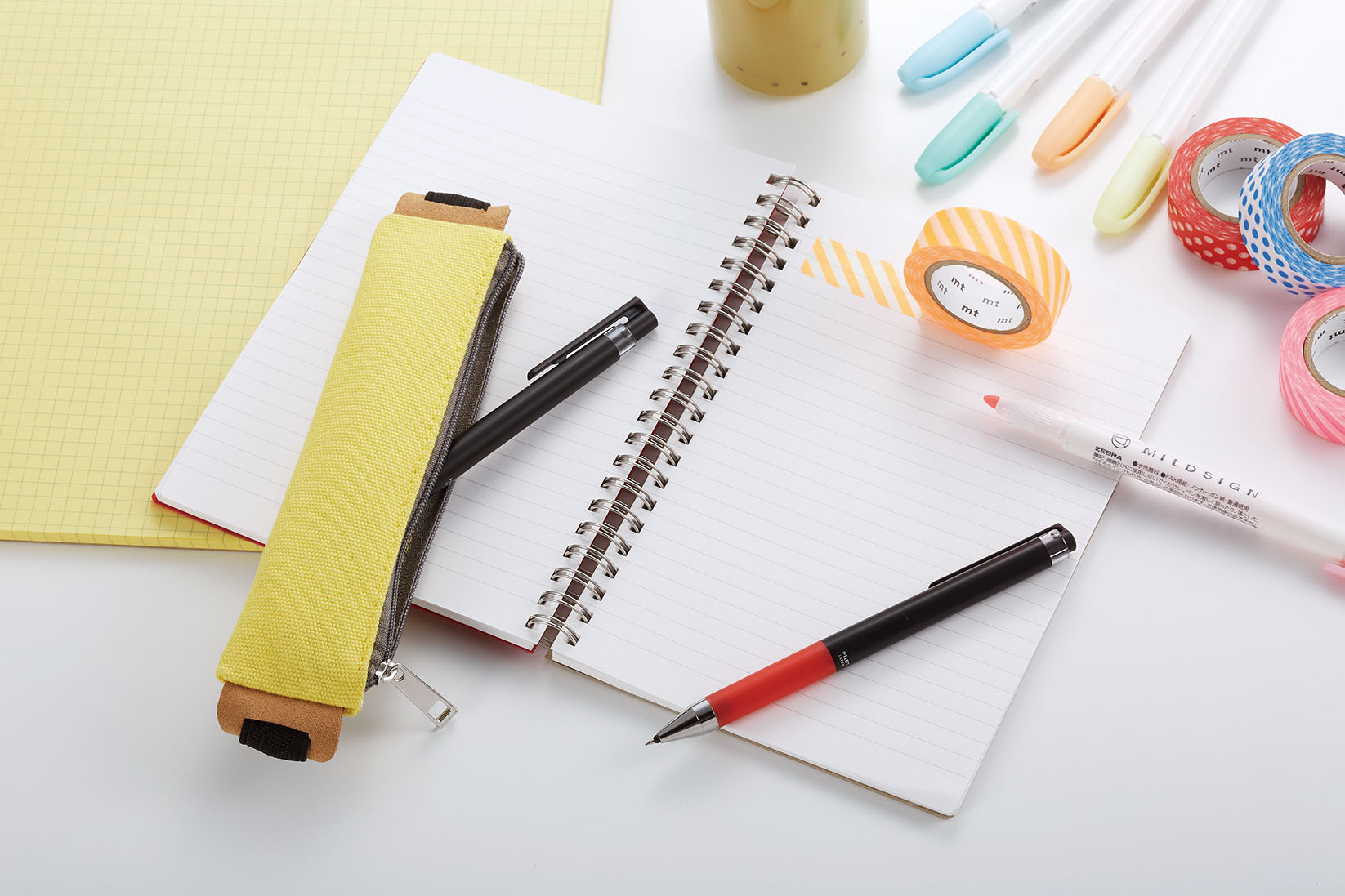 B6/A5サイズのリングノートや手帳、ダイアリー等に装着して携帯できます。ペンケースには種類により、2~3本の筆記具が入るので、お気に入りの筆記具をいつでも一緒に持ち歩けるので、かさ張らなくてとても便利です。