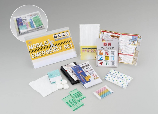 外出時の防災対策として携帯しておくと役立つアイテムをコンパクトなチャック付き袋にまとめました。