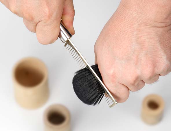 世界に誇る熊野の化粧筆。筆司の手作り極上品質化粧筆。穂先をカットしない熊野の化粧筆は、穂先がやわらかくやさしいので肌触りが違います。メイクのノリや持ちも断然違う「本物」の逸品です。