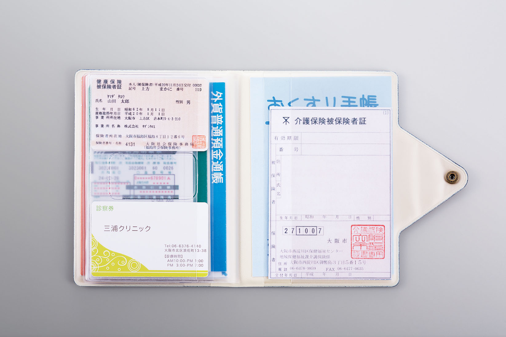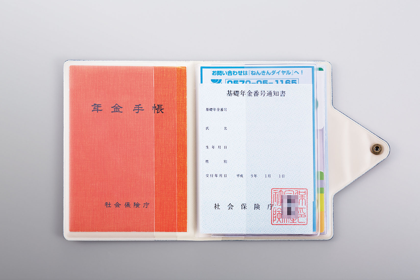 年金手帳やねんきん定期便などをまとめておけるとても便利な手帳型のケースです。年金だけでなく、医事関係のおくすり手帳や、保険証書、診察券等も収納出来ます。通帳やキャッシュカードなども収納できるのでまさにマルチなケースです。