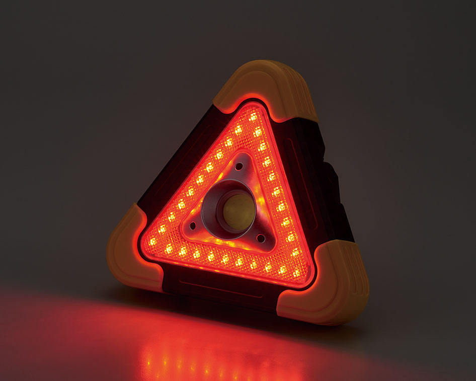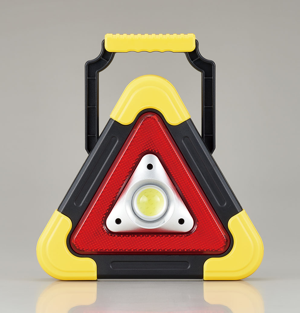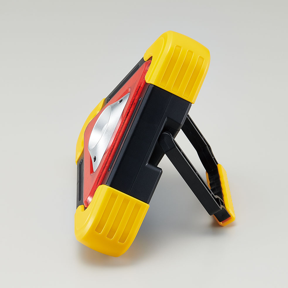 運転中の災害・事故などトラブルに遭遇した時に緊急表示灯として安全を守ります。持ち手が付いているので非常灯としても、持ち手はスタンドにもなるのでワークライトとして夜間のエンジントラブルなどにも重宝します。