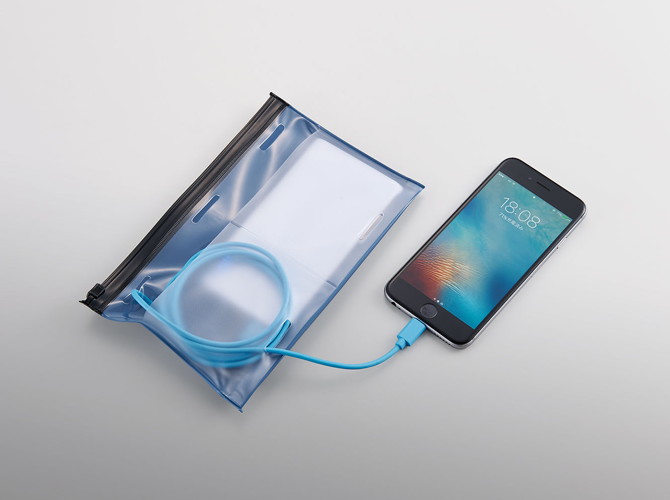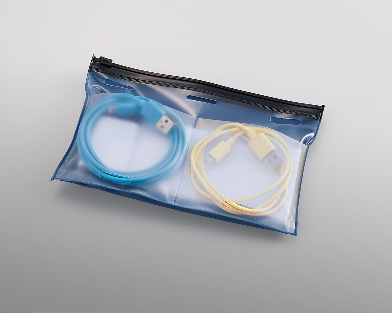 スリム・軽量・コンパクト!モバイル小物をスッキリ収納! コードを通すスリットがついているので、バッテリーを入れたまま携帯充電が可能。携帯充電用とバッテリー充電用の2つの接続コードが収納できるポケット付き!