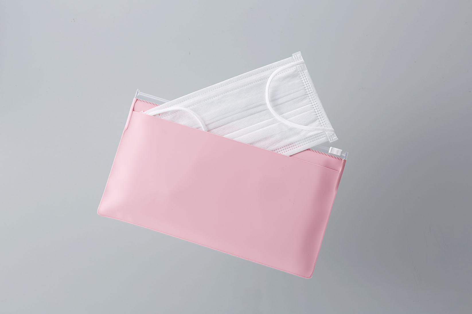 スライダーケースに感染症予防アイテムをセットした携帯用ウイルス対策セット。ケース背面にはマスクポケット付きで、一時的に外したマスクを保管出来ます。