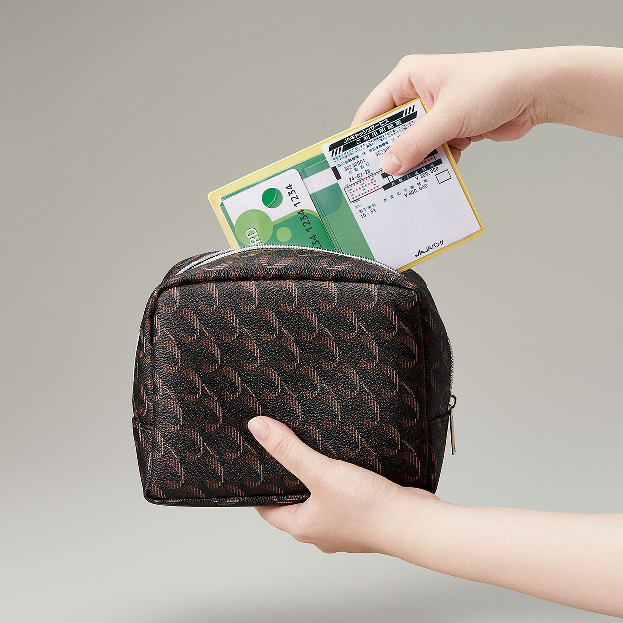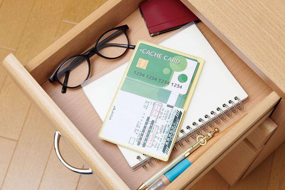 通帳1冊、カード1枚収納可能。明細などを入れるサブポケットも1つついています。