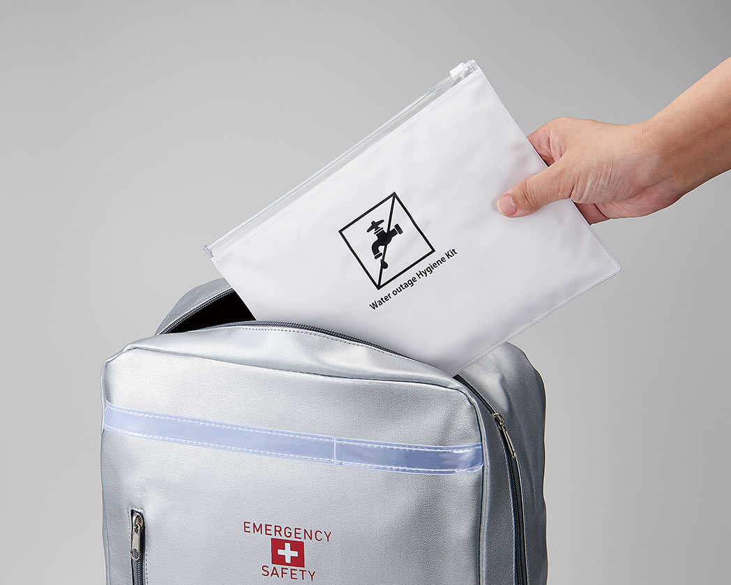 災害などによる断水時に、消耗必要品をまとめてセット。