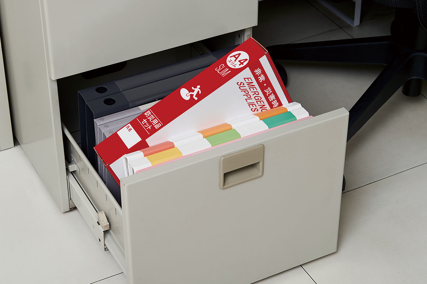地震・災害などにより急いで避難を要する際に、避難場所までの移動を素早く行う為、最低限必要と思われる防災グッズをセットした避難セット。軽量のトート型リュックタイプで両手を空けて行動出来ます。 A4サイズスリムパッケージ入りで書棚やデスクの引き出しにも収納可能!